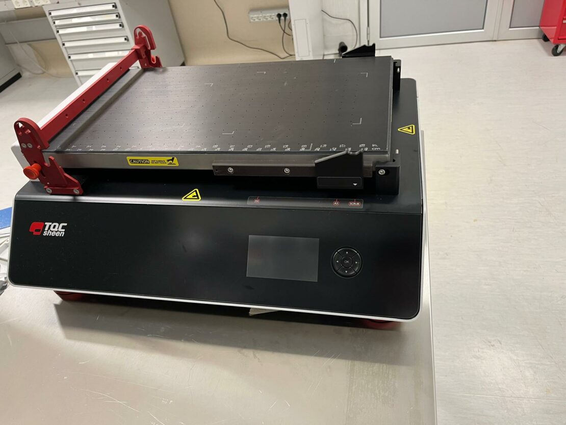 Provided with heated (up to 100°C) and perforated vacuum bed, the instrument allows adjustment of the speed, pressure and pull direction of the spreading process, to achieve a controlled and uniform film thickness with a maximum size of 29.7 x 42 cm. The uniform temperature distribution across the entire vacuum plate enables in-situ and regulated drying of the deposited film.